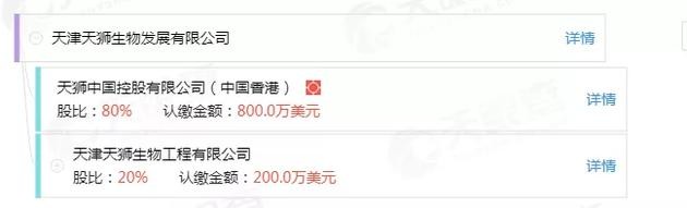 不过,工商资料显示,“真天狮”天津天狮生物工程有限公司持有“假天狮”天津天狮生物发展有限公司20%的股权,而“假天狮”的另一个股东为天狮中国控股有限公司。