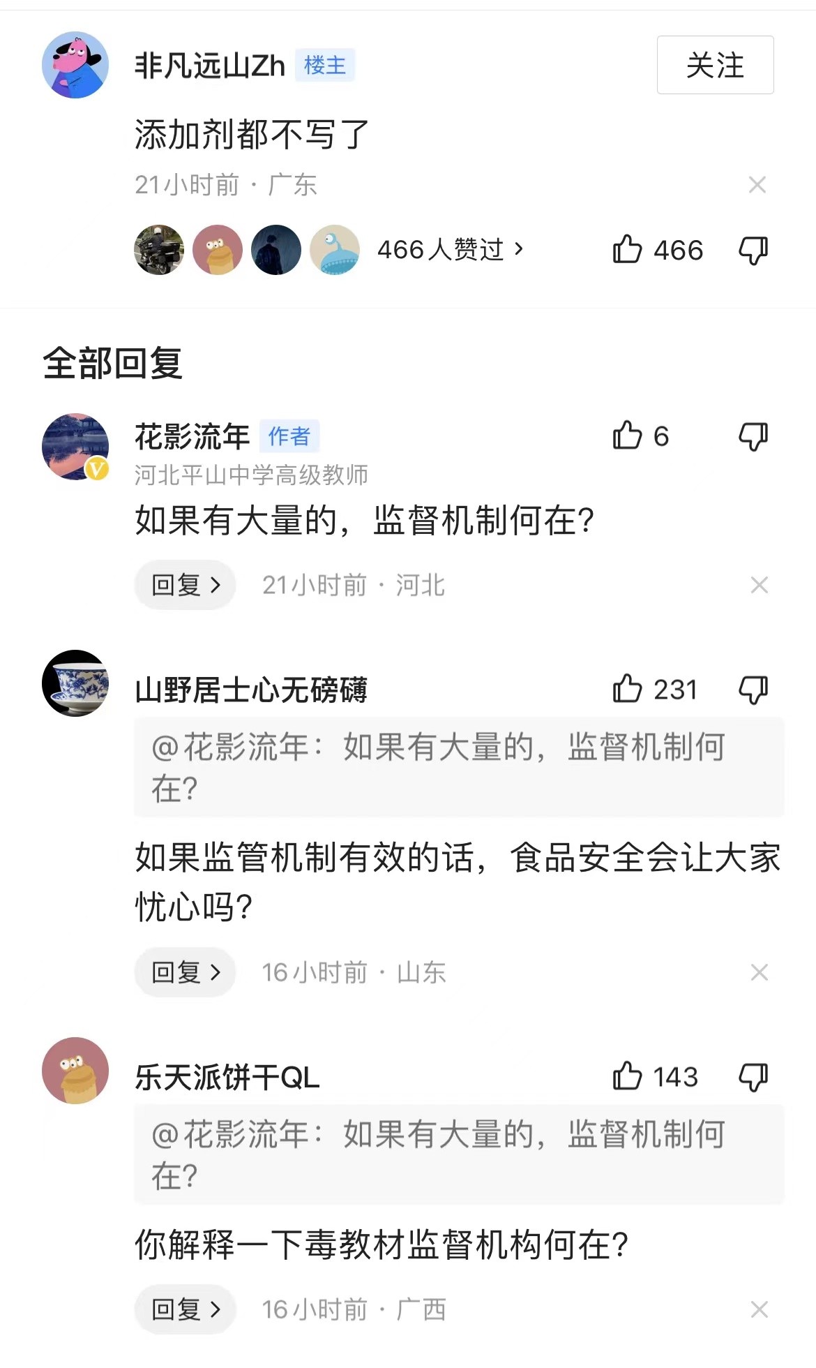 让我们回顾一下这位教师的话。她强调,只要预制菜的配料表干净,就问题不大。看似简单的一句话,实则给我们提出了一个重要的课题。这是否意味着我们只需要关注食品的配料表,就能确保我们的饮食健康?身为教师发出的消息你是依据什么来确定没问题?你们教师也有没有吃?为什么要先拿祖国的花朵, 先下手?