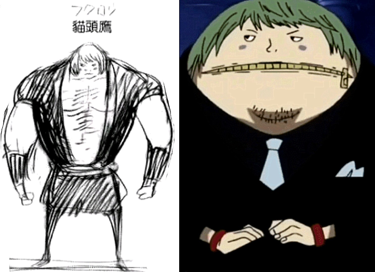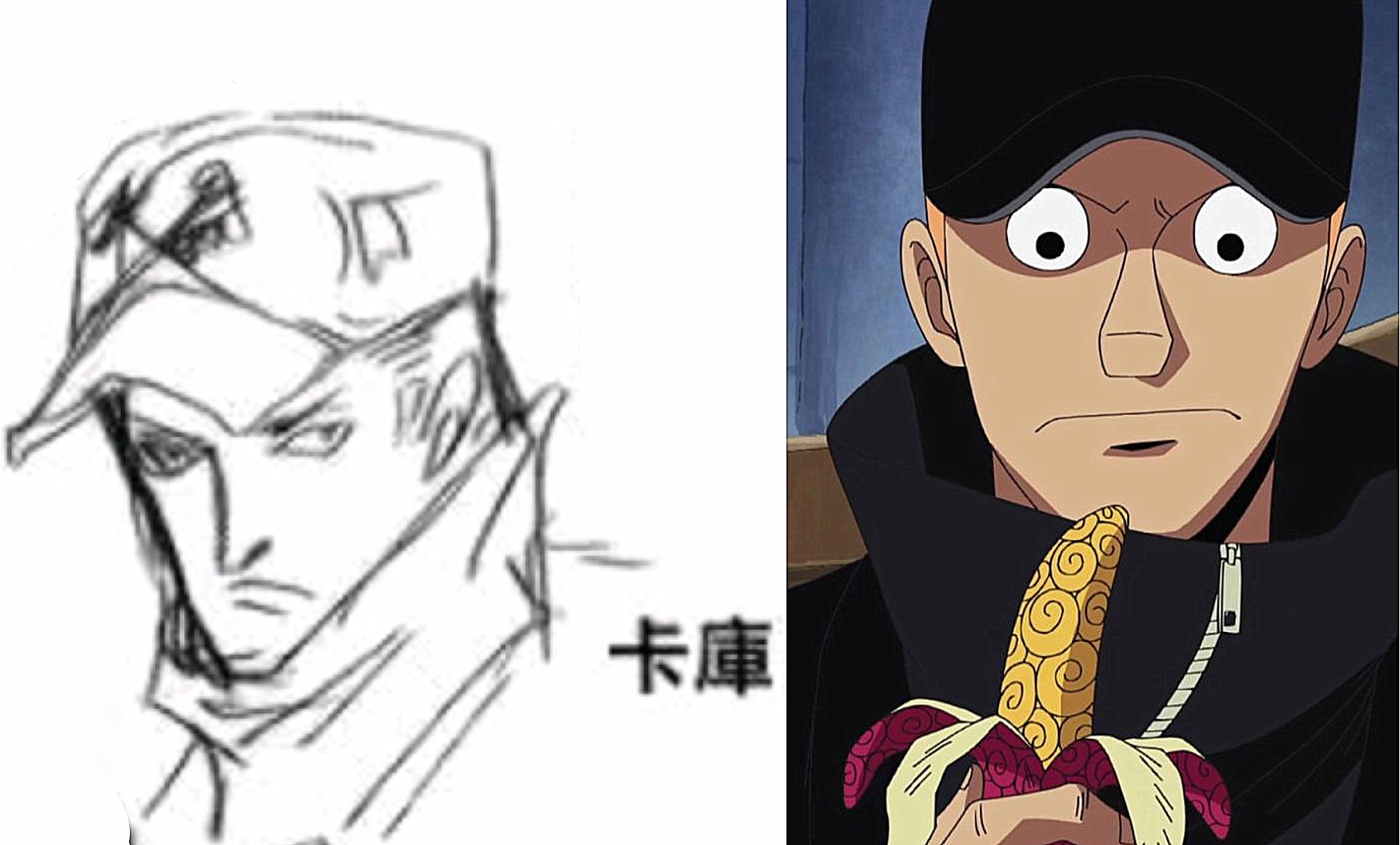 卡库最大的改变就是鼻子没现在那么长,同时他的眼睛也修改了。从对比图来看,草稿时期的卡库更加高冷、帅气且具有杀手的独特的气场,而现如今的卡库则是一位逗比型杀手,非常搞笑。