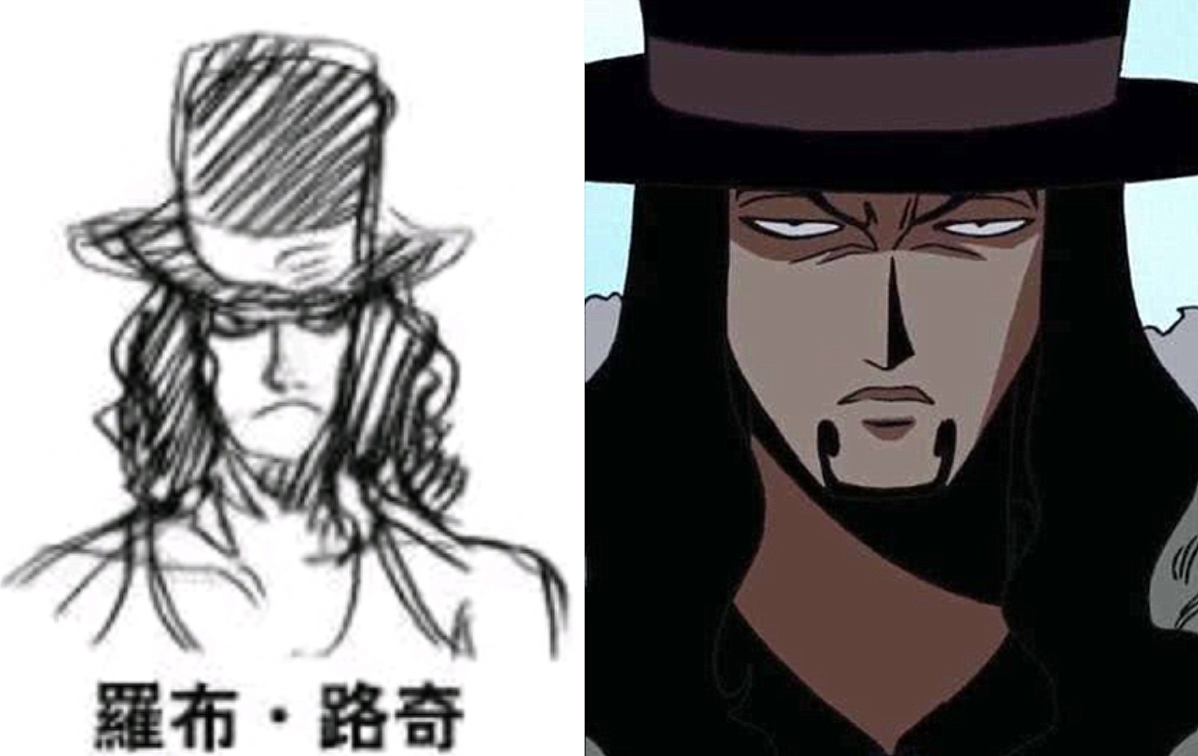 路奇最大的变化是眼睛更加犀利,添加了胡子,让自己看起来更像是一位CP9老大以及BOSS。不然从草稿来看,反而有一些呆呆的样子,的确不符合BOSS的气场。