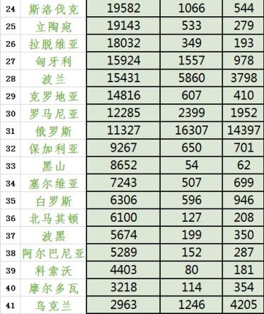 欧洲41个国家和地区里,西班牙排第18,比较中规中矩,勉强排进前一半。但是在经济相对比较好,没有受社会主义洗礼的老欧洲里,只有葡萄牙和希腊比它更低,其他几乎都是前社会主义国家。