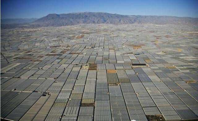 这是西班牙一处大棚种植基地。远看密密麻麻的。