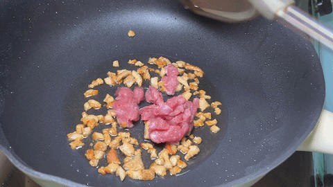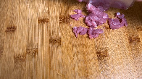 7. 瘦肉部分切成肉丁,切好放入小碗中备用