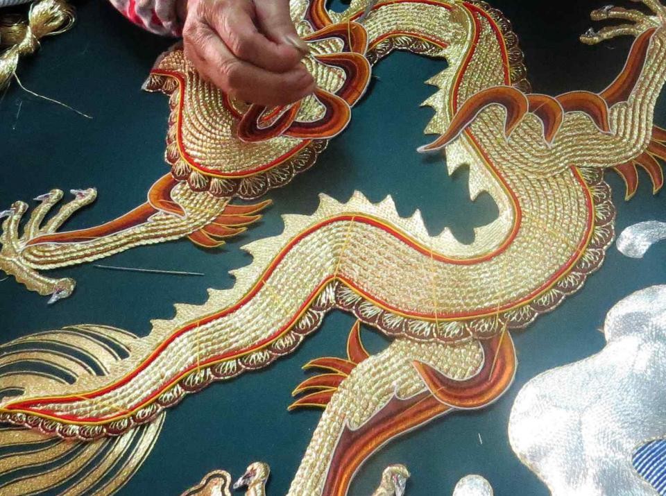 ▶|潮绣与广绣合称为粤绣,与苏绣、湘绣并称,是中国四大名绣之一。传说潮绣创始于少数民族,与黎族织锦同源。
