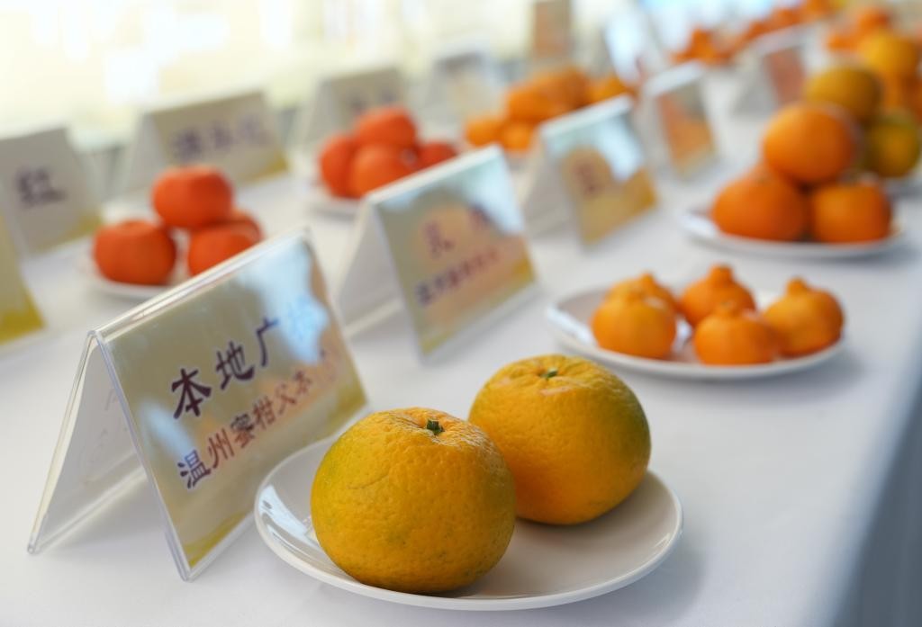 中国黄岩蜜橘种源研究中心内,各品种柑橘集中展示。新华社记者周佳谊 摄