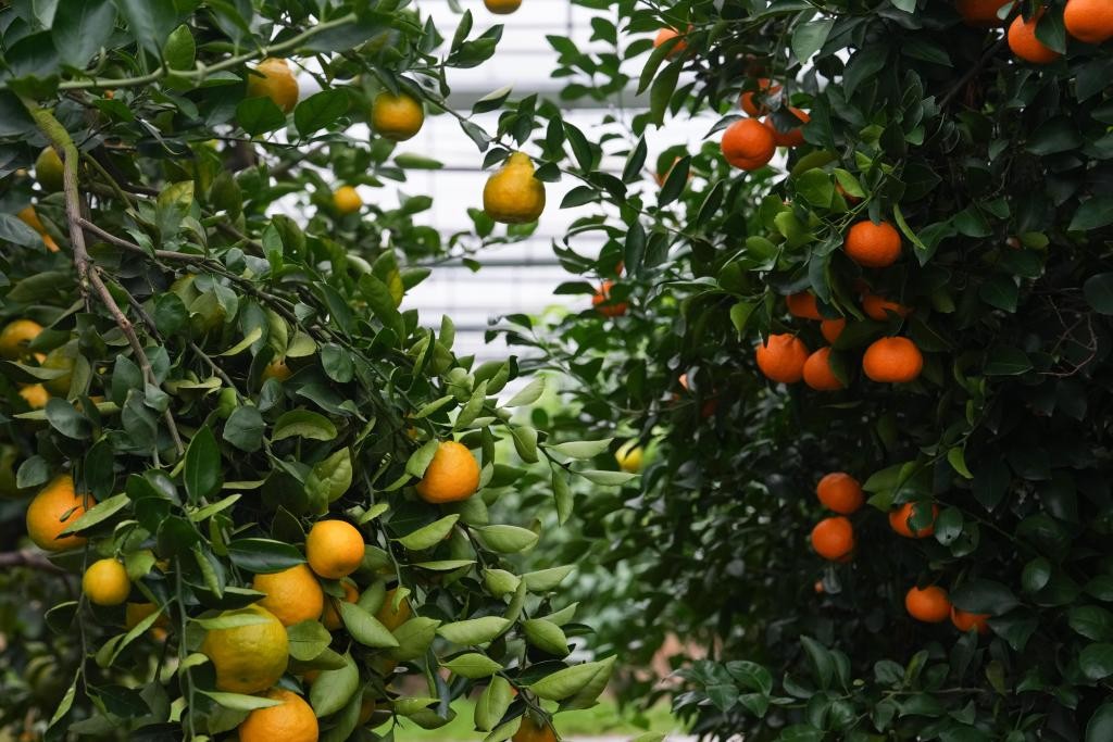 图为中国柑橘博览园大棚内的橘树。新华社记者周佳谊 摄