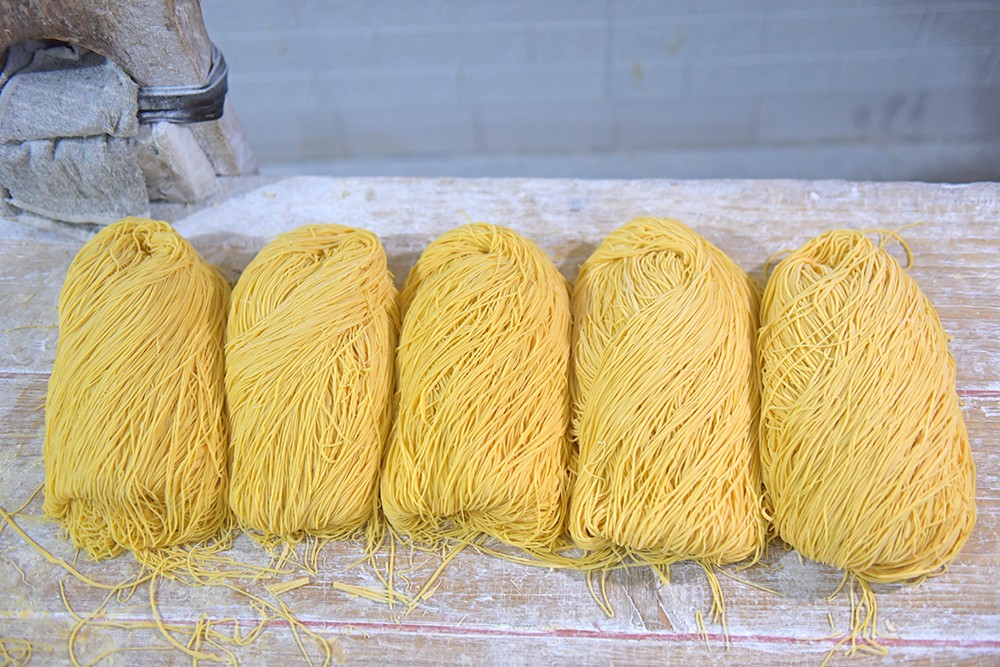 图为手工切好的杠子面