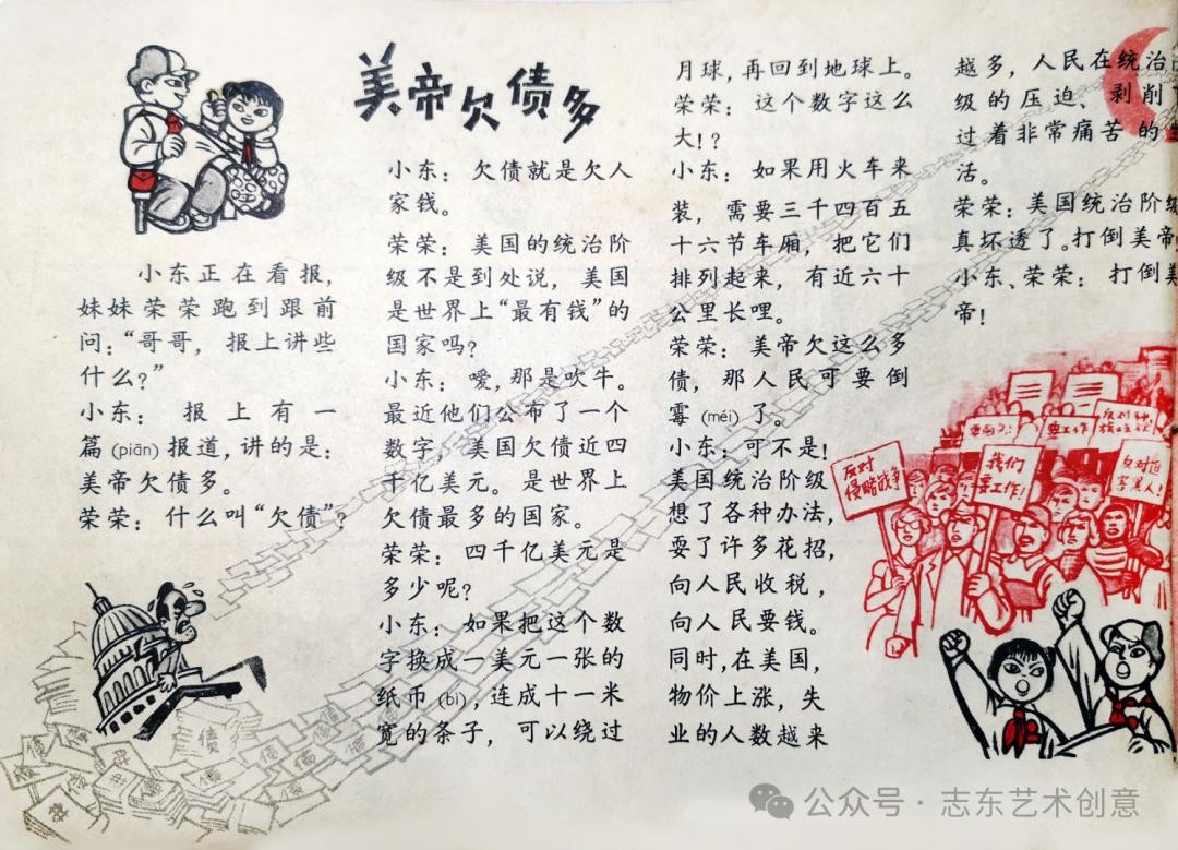 我至今有印象的是曾经的刊物里描绘了狗熊偷吃蜂蜜的情形,蜜蜂发现以后群起而攻之,蜇得狗熊嗷嗷叫并狼狈逃窜。还有跨页《地道战》作战过程全景式展现之画面,以及宣传图片——“美帝国主义是纸老虎";“坚决打败一切来犯之敌”;“发展体育运动,增强人民体质……”
