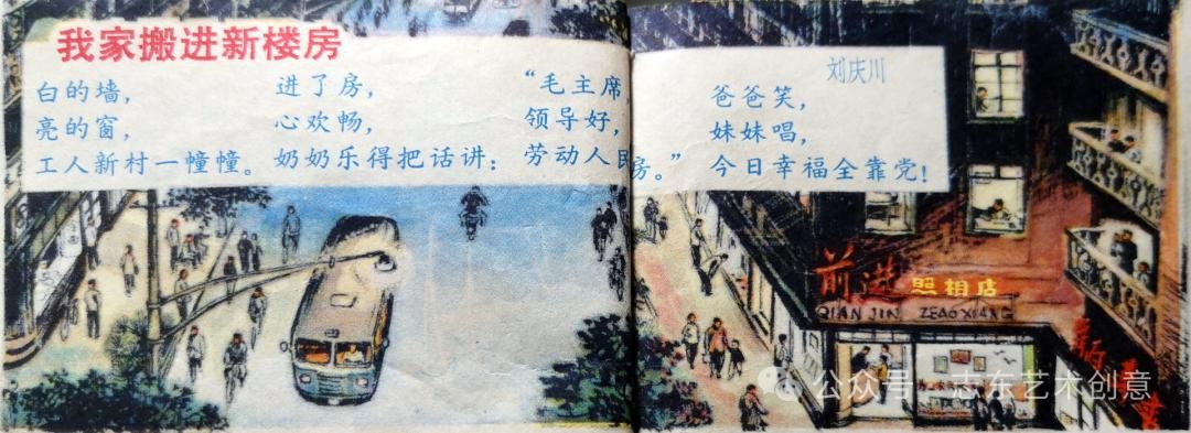 翻开刊物有图文——《我家搬进新楼房》,宅在里弄内的我羡慕人家住在沿街的楼房里,伫立在阳台脚下是商店,俯瞰人头攒动,电车呜呜开过,在家就能看见城市街道风景。