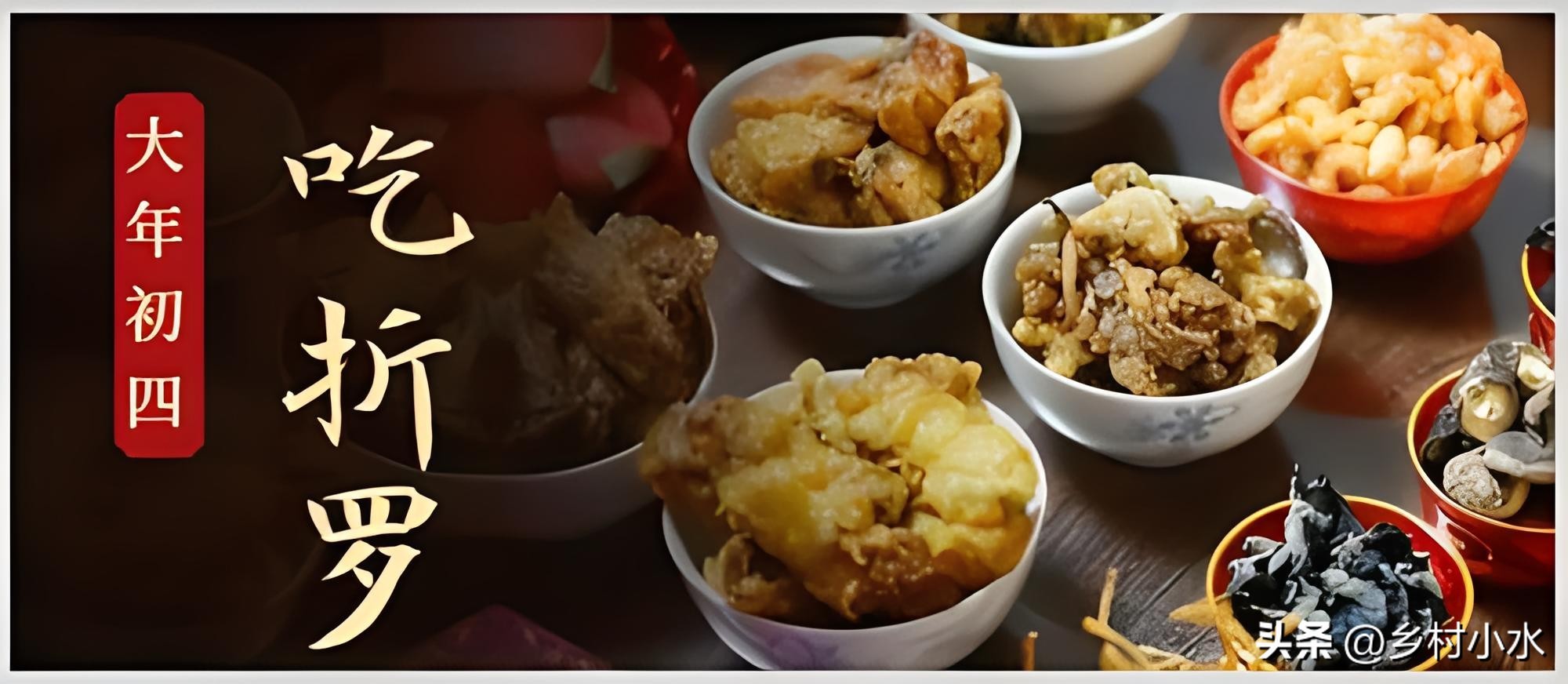 大年初四吃折罗是我国传统年俗之一,所谓的“折罗”就是把除夕至大年初三剩下的饭菜合在一起的大杂烩。过年期间的饭菜往往会比较丰盛,难免会有剩菜,在大年初四把所有的剩菜一起吃完,体现了人们勤俭节约、珍惜粮食的好习惯。