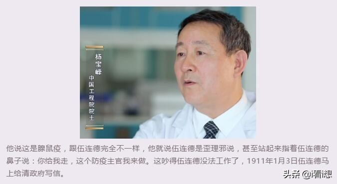 中国工程院院士杨宝峰讲述“梅尼不认可伍连德的飞沫传染和肺鼠疫的说法”