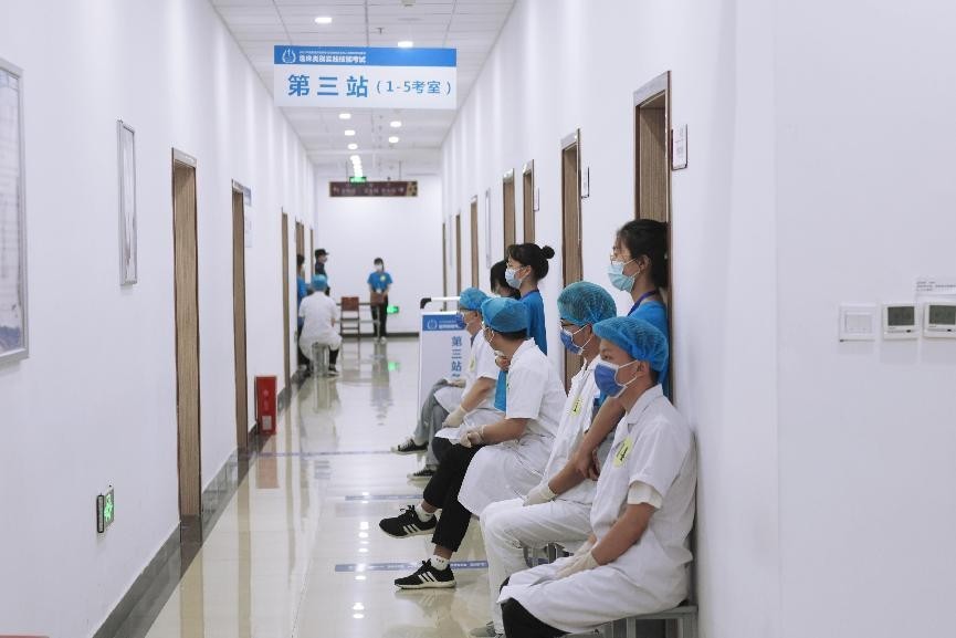 在巡察中,阚全程详细了解了郑州人民医院考试基地考试期间疫情防控和考务管理方面的具体做法、实施情况及落实效果,并深入考试基地实地查看了技能考试流程。