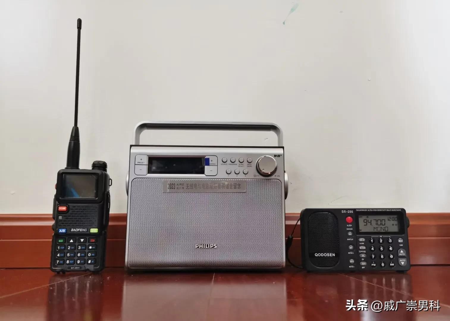 三台传统的收音机中实际上有一台是对讲机,抑或我们业余无线电爱好者(火腿)所称的手持电台,因为它还可以收听调频广播,所以我也把它列于收音机了。
