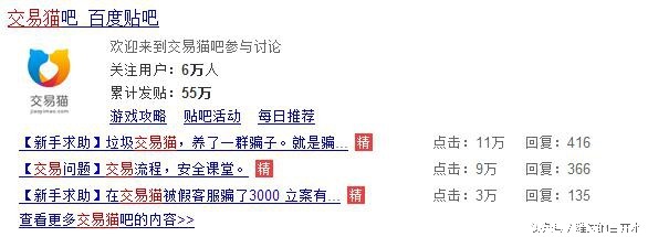 交易猫贴吧:人数6万人 累计发帖:55万