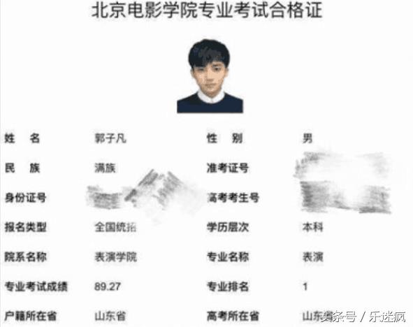 北影艺考成绩公布,郭子凡第1名王俊凯19名