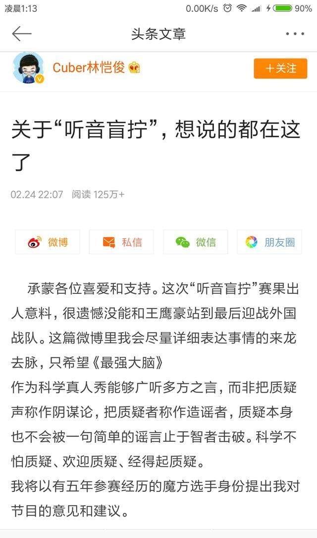 2月24日林俊凯发布了文章《关于“听音盲拧”,想说的都在这了》,把他想说的全部说了出来。