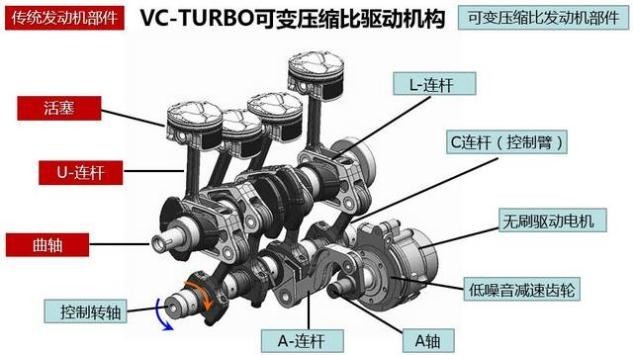 那么可变压缩比又是怎么形成的呢?通俗来说日产就是在同样的活塞做工行程不变的情况下,对活塞的止点位置进行改变,这就会使得气缸顶端空间变大或者变小,这也就压缩比改变的原理。当然了,日产天籁的这台代号为KR20发动机的最高可变压缩比达到了14.1,这对于发动机的抗爆震要求特别高,所以搭载这台发动机的高配车型推荐的燃油标号都是95#及以上。