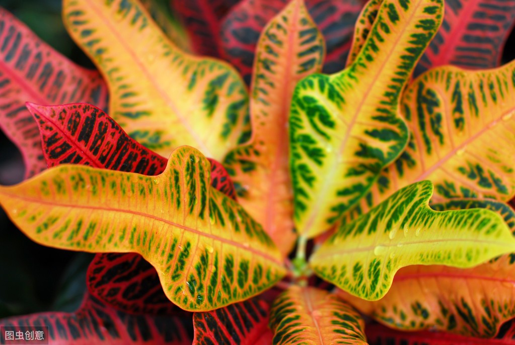 变叶木最吸引人的地方就是其叶片鲜艳的色彩及多变的颜色,如红,橙红,紫红,黄,绿等,它性喜充分日照,日照越充足,颜色越鲜艳。变叶木喜欢明亮的光线,并在其中茁壮成长,实际上需要光照来生产那些令人惊叹的五彩叶子哦~