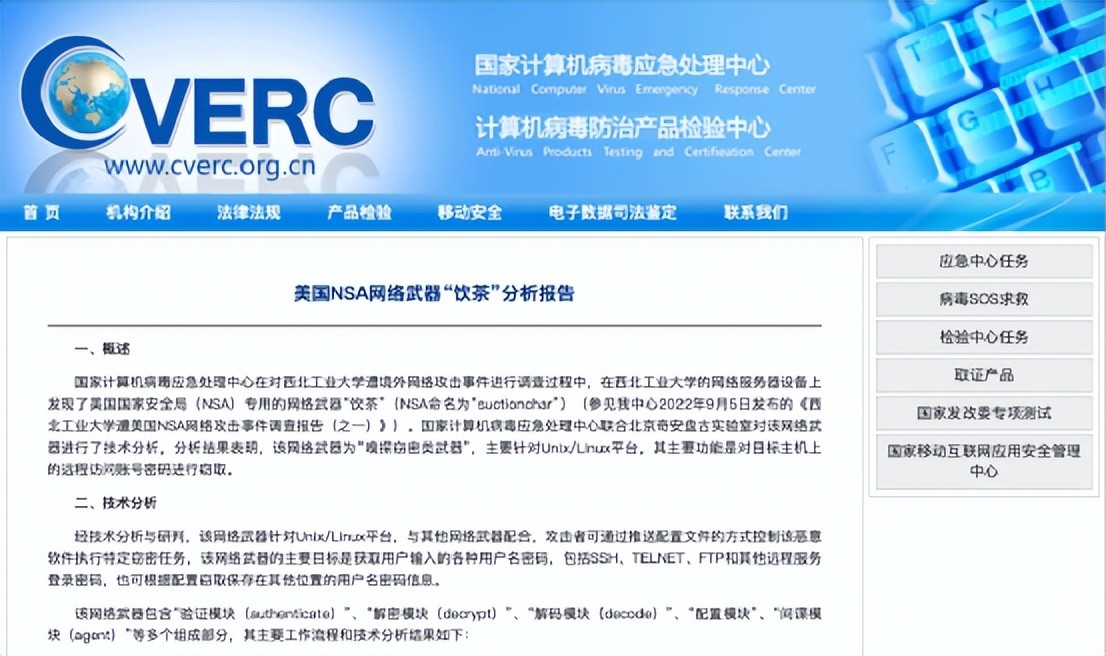 随后,国家计算机病毒应急处理中心发布《美国NSA网络武器“饮茶”分析报告》,把美国情报部门的这款网络战武器的源代码“切片研究”,做成分析报告挂在了官网上。