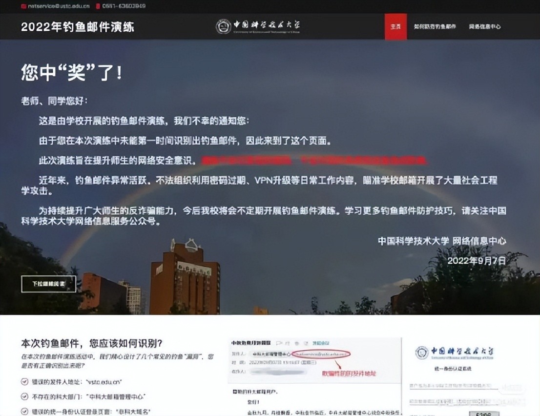 不久前,中国科学技术大学在校内开展了一场大规模网安演练,趁着中秋节到来之际,给全校师生发了一封“漏洞颇多”的“钓鱼邮件”。
