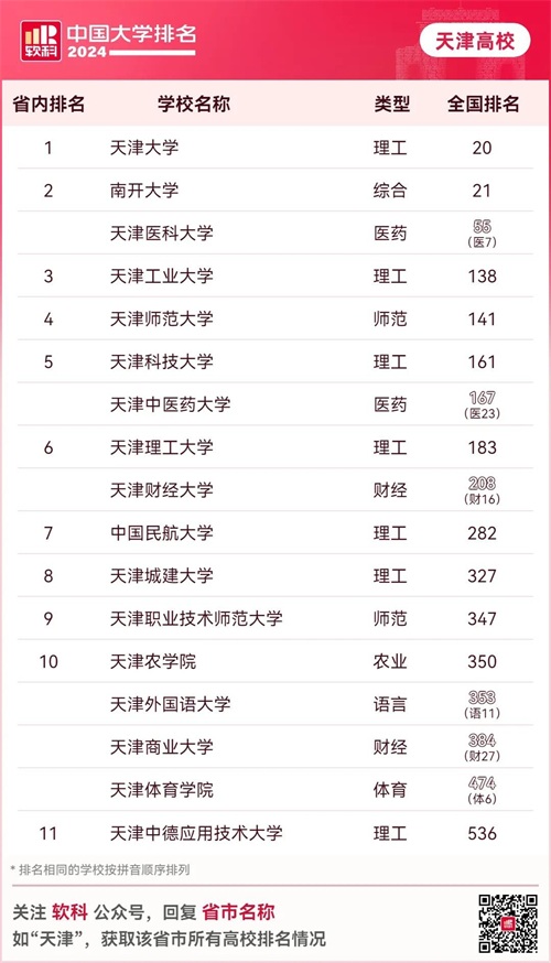 2024天津高校最新排名出炉!南开屈居第二,天津科大第6