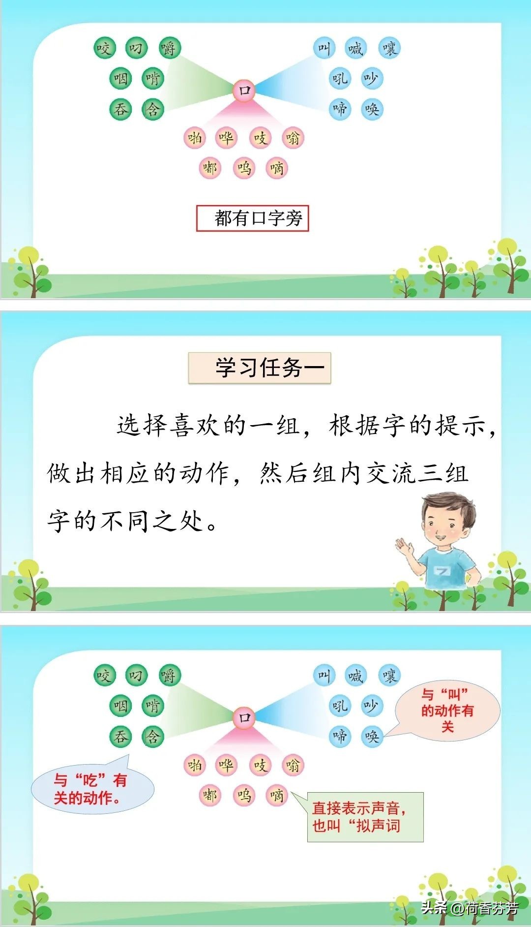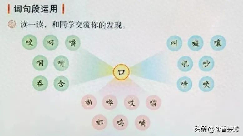 这些生字都与我们的嘴巴有关,这就是汉字中“偏旁表义”的构字规律。