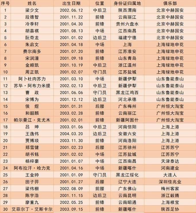 U19国青出征中乙30人大名单出炉,首战湖南湘寿