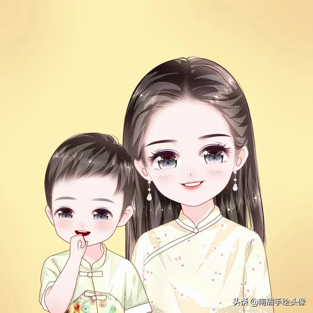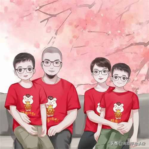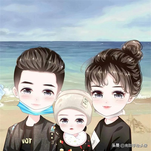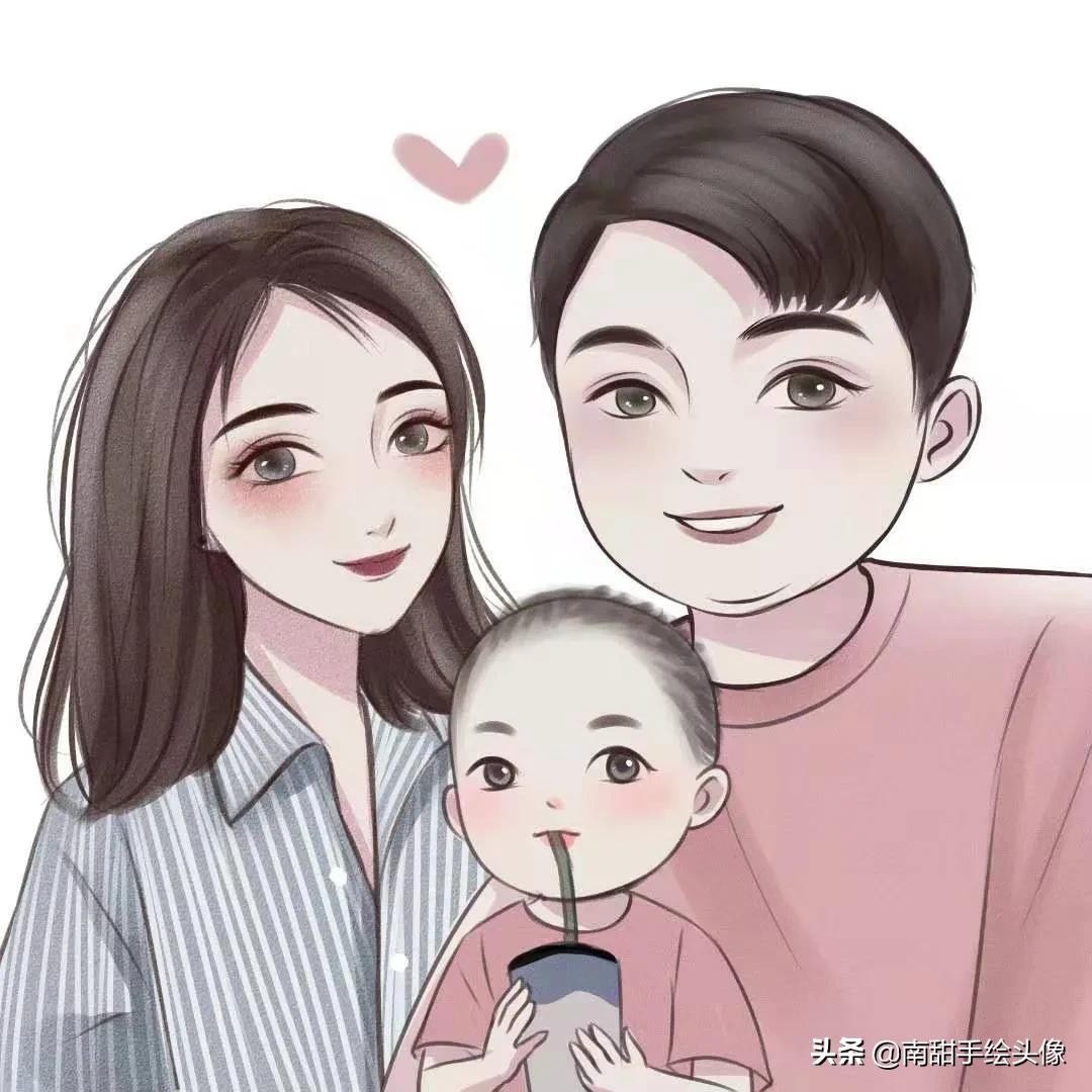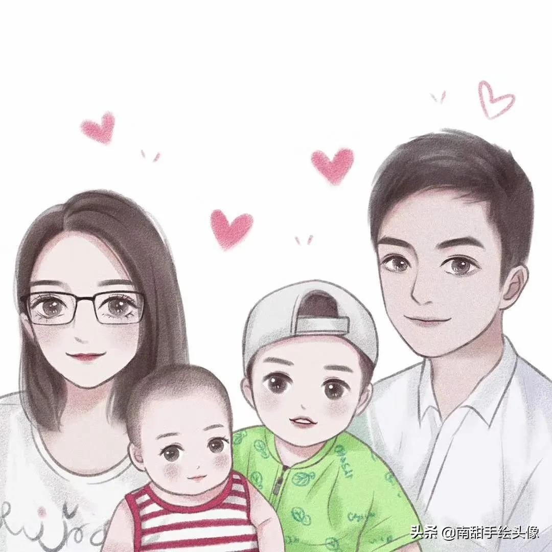 分享一组特别温馨可爱的全家福头像,一家四口,一家三口,亲子手绘头像,岁月静好,有你们在刚刚好。