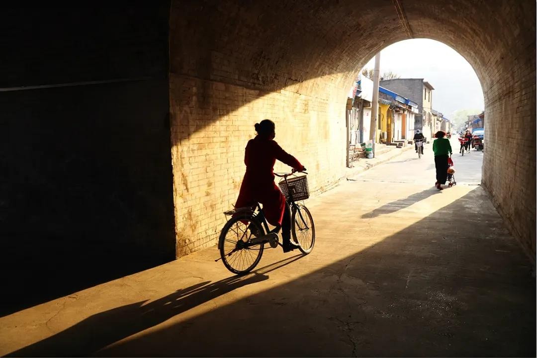 为了表现拍摄主体的特有面貌,他还较多地运用框架式构图方法,即选择一个框架作为画面的前景,而将镜头的焦点对准拍摄主体,使画面更加立体直观,富有纵深感,更具视觉冲击力;同时让主体与环境相呼应,达到深刻表现主题的艺术效果。如拍摄“高家堡”的过程中,为了表现老房子的古老沧桑,他将巨型砖拱框架作为画面前景,同时将镜头对准老房子,整个画面充满了现实的纵深感和历史的厚重感。