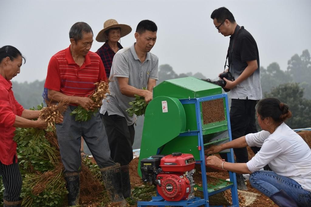 8月18日,荣县观山镇蔡家湾村的花生地里,一群村民正在忙碌着,有的忙着把花生从土里拔出来,有的忙着用机械进行脱粒采果。这里,省农科院专家正在进行花生新品种测产。
