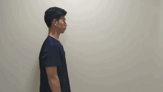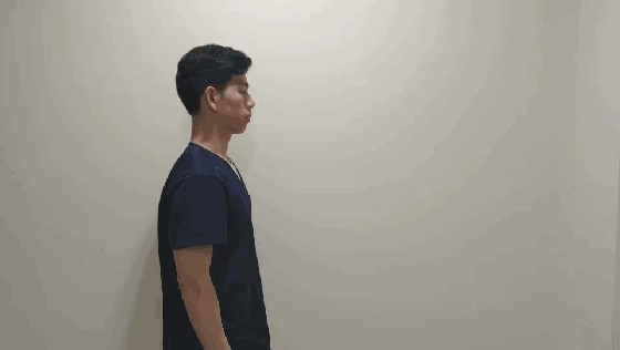 为了让膝盖正位,首先可以练习站立体式。靠墙半蹲站立,大腿小腿90°。确保膝盖在脚掌正上方。