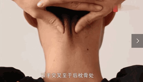 3、双手抱后脑勺,用大拇指按揉颈部与后脑勺连接处,按摩这个地方可以有效缓解头痛的情况。