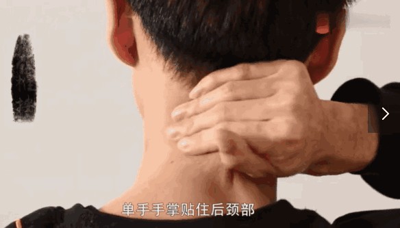 1、用食指和中指并排按摩颈部两侧肌肉,放松两侧肌肉。
