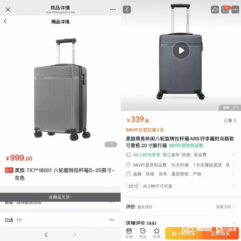 同时,有通过该渠道提货的消费者质疑产品存在溢价。以一个品牌行李箱为例,根据消费者贴出的对比照,电商平台上售价为339的同款尺寸行李箱,中欣卡提货商城上售卖的价格为999元,高出66%。