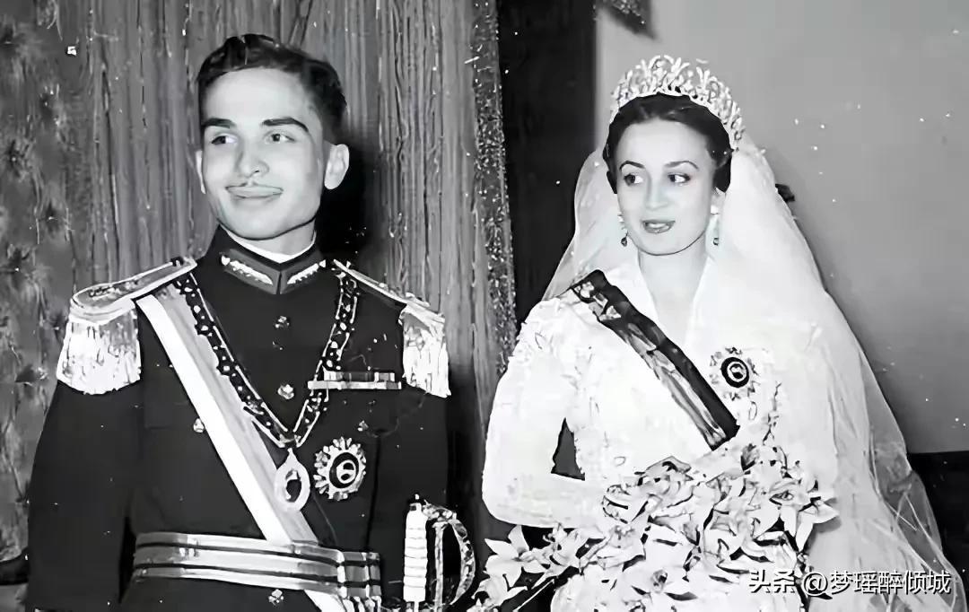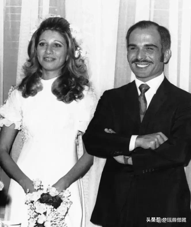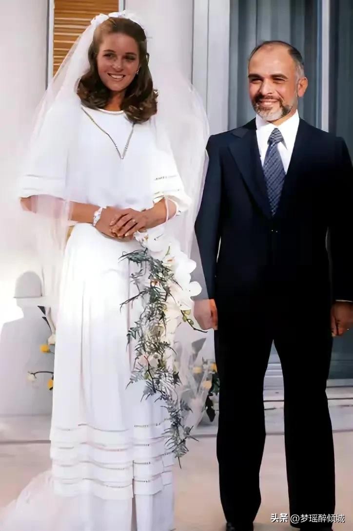 穆娜王妃和侯赛因国王结婚照。