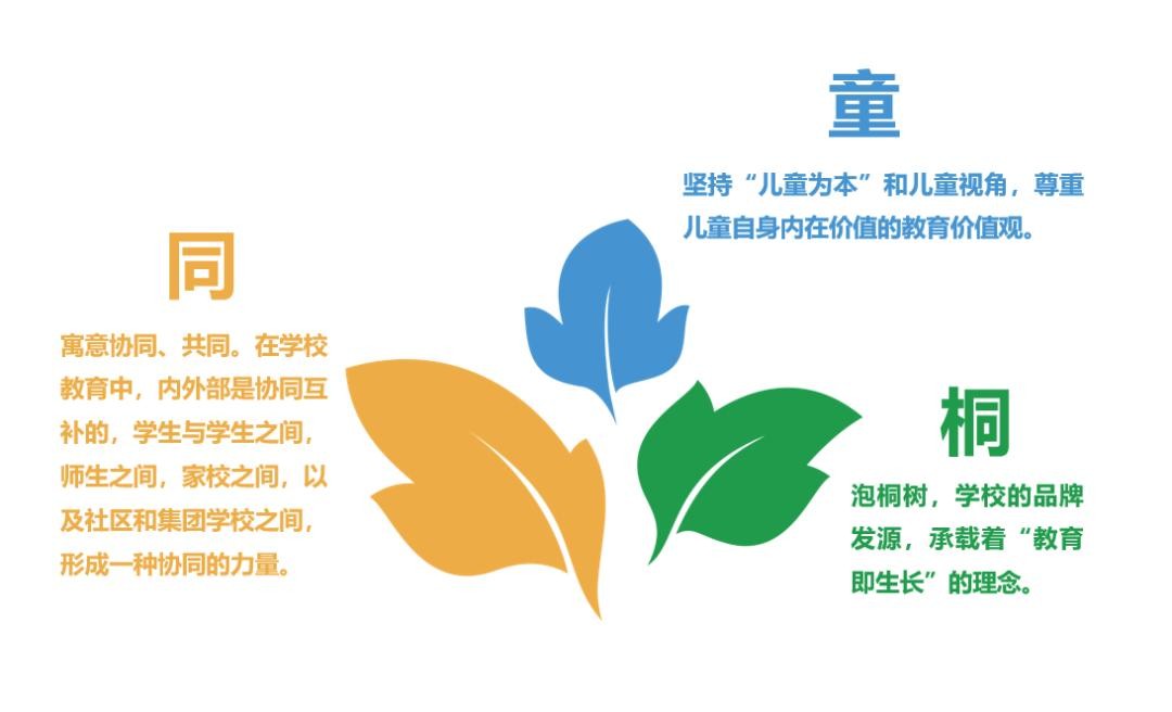 两校区都将“让每一个生命自由舒展”作为教育追求。“桐悦文化”贯穿于学校教育教学和管理的方方面面,以学生的成长为出发点,激发学生生命自由舒展的能力,培养积极阳光的心态和正直不屈的品性,像泡桐树一样迎着朝阳茁壮成长。