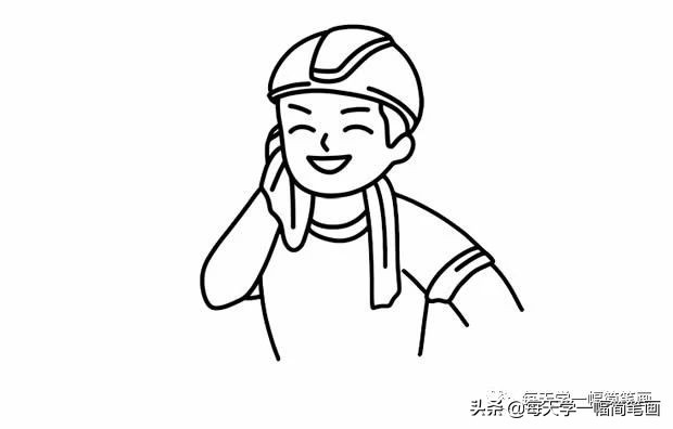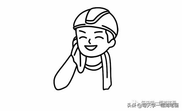 第一步:首先画出工人的头部。