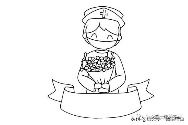 第三步:在护士的身下画出一条横幅。