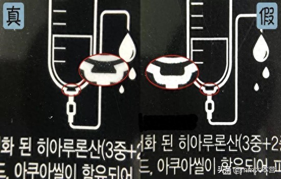 正品JM急救深海补水炸弹面膜背面吊瓶图案处的梯形是非常方正的那种,而假货的JM急救深海补水炸弹面膜背面吊瓶处的梯形则是带有圆形弧度的那种。