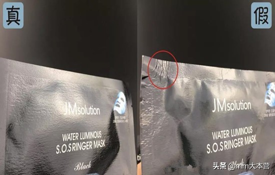 正品的JM急救深海补水炸弹面膜的包装无论是压边还是什么,都是非常工整的。而假货的JM急救深海补水炸弹面膜的包装就出现了褶皱等问题,看起来非常的劣质。