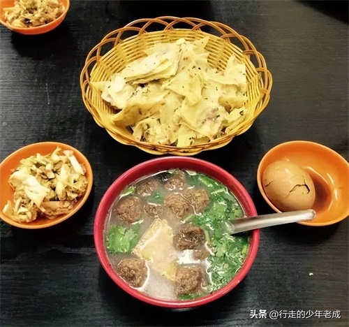太原人早晨从一碗丸子汤开始,丸子汤是独具山西人口味的好味道,无论年轻人还是中老年人都喜欢喝。一般都以牛或者猪骨头汤为主,丸子牛肉要选用偏瘦的通脊肉,切碎后加入葱、姜、蒜和淀粉用力揉搓,让淀粉和肉完全融合到一起,一个一个挤出丸子放入油锅炸,外表焦脆,里面细嫩,入口咬开后鲜甜的肉汁溢满口腔,真是别无二致的绝妙口感。丸子汤的好搭档是油条和甜麻叶。
